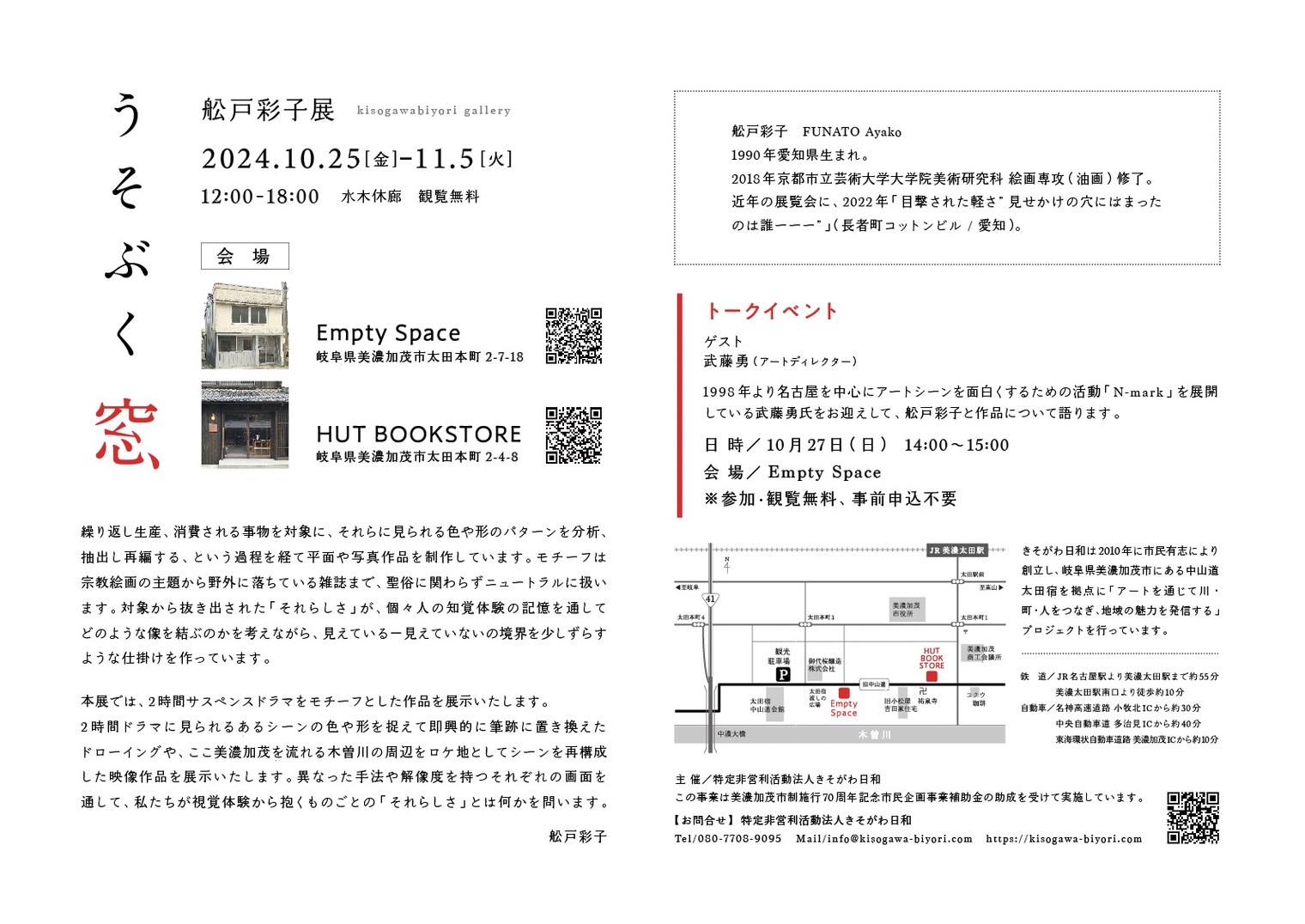 - ※Empty Space(エンプティ スペース)は旧中山道太田宿にあるレンタルスペースです。アート・音楽・演劇・ファッション・食の展示会やポップアップショップなどジャンルレスな実験の場として、多くの人が楽しめる場となることを目指します。
